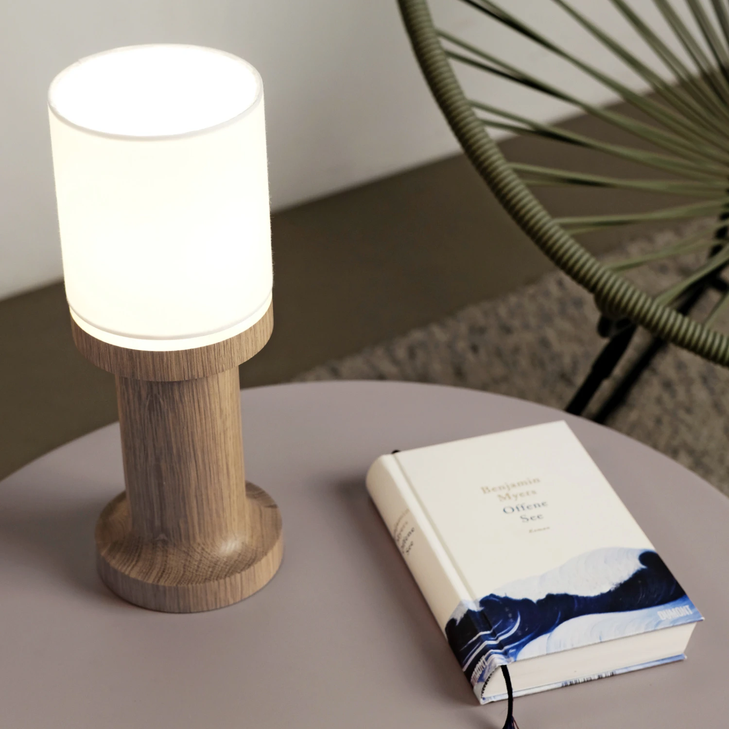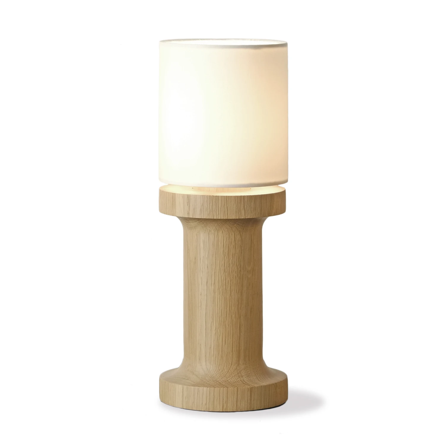 Die klare Form der kleinen Tischleuchte soll an archetypischen Objekte wie Schachfiguren oder historischen Säulen erinnern, was ihr durchaus gelingt. Der Fuß aus Weißeiche in Kombination mit dem Schirm aus Chintz versprüht einen natürlichen Look. Dank ihrer kompakten Maße lässt sie sich ideal als Nachttischleuchte oder auch auf der Fensterbank verwenden.