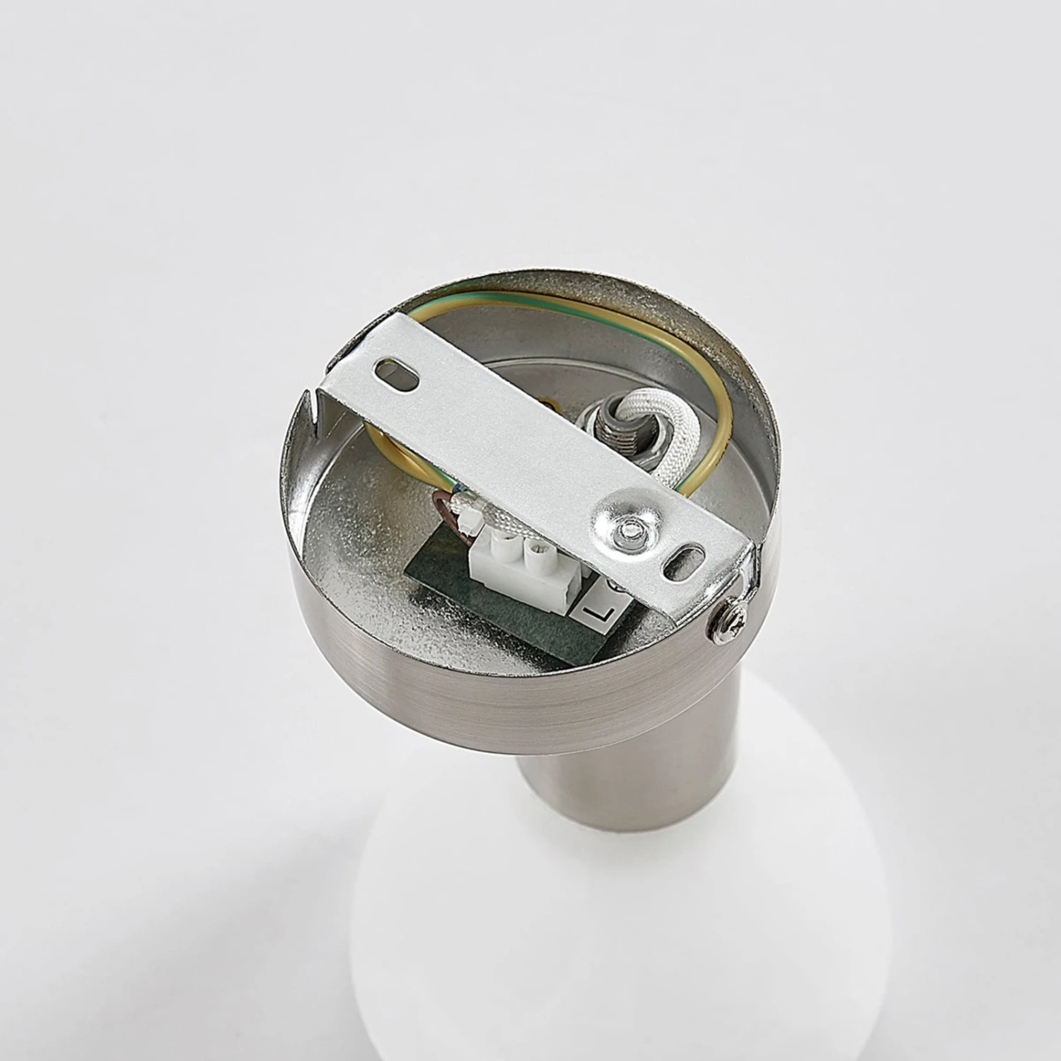 Paulina ist eine Wandleuchte, die wie ein Strahler aufgebaut ist. Über ein Gelenk ist der Schirm mit der Wandhalterung verbunden, so dass man ihn drehen und schwenken kann. Bei Bedarf empfiehlt sich auch die Deckenmontage. Der bauchige weiße Schirm hat eine edle Alabastertönung, so dass man sanfte Nebelschwaden erkennen kann, die das Glas durchziehen. Zudem bewirkt das Glas eine weiche Lichtverteilung und damit eine höhere Wohnlichkeit.
