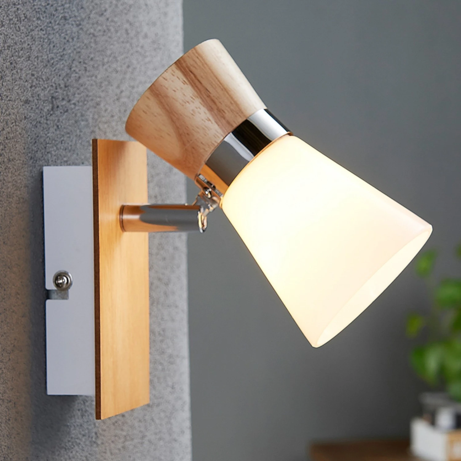Schöner Holz-Strahler Vivica mit weißem Glasschirm