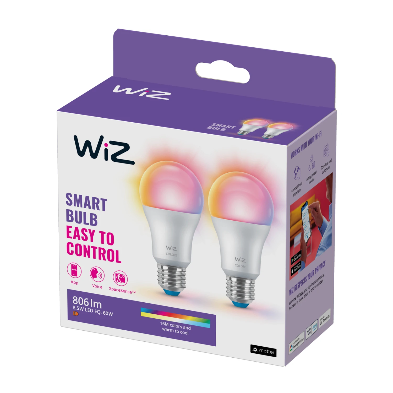 Smart steuerbare WiZ E27-LED-Tropfenlampe A60 8,5 W RGBW matt, 2er-Packung